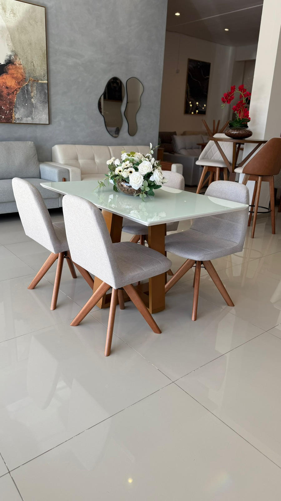 • Acompanha 4 cadeiras giratórias confortáveis e modernas